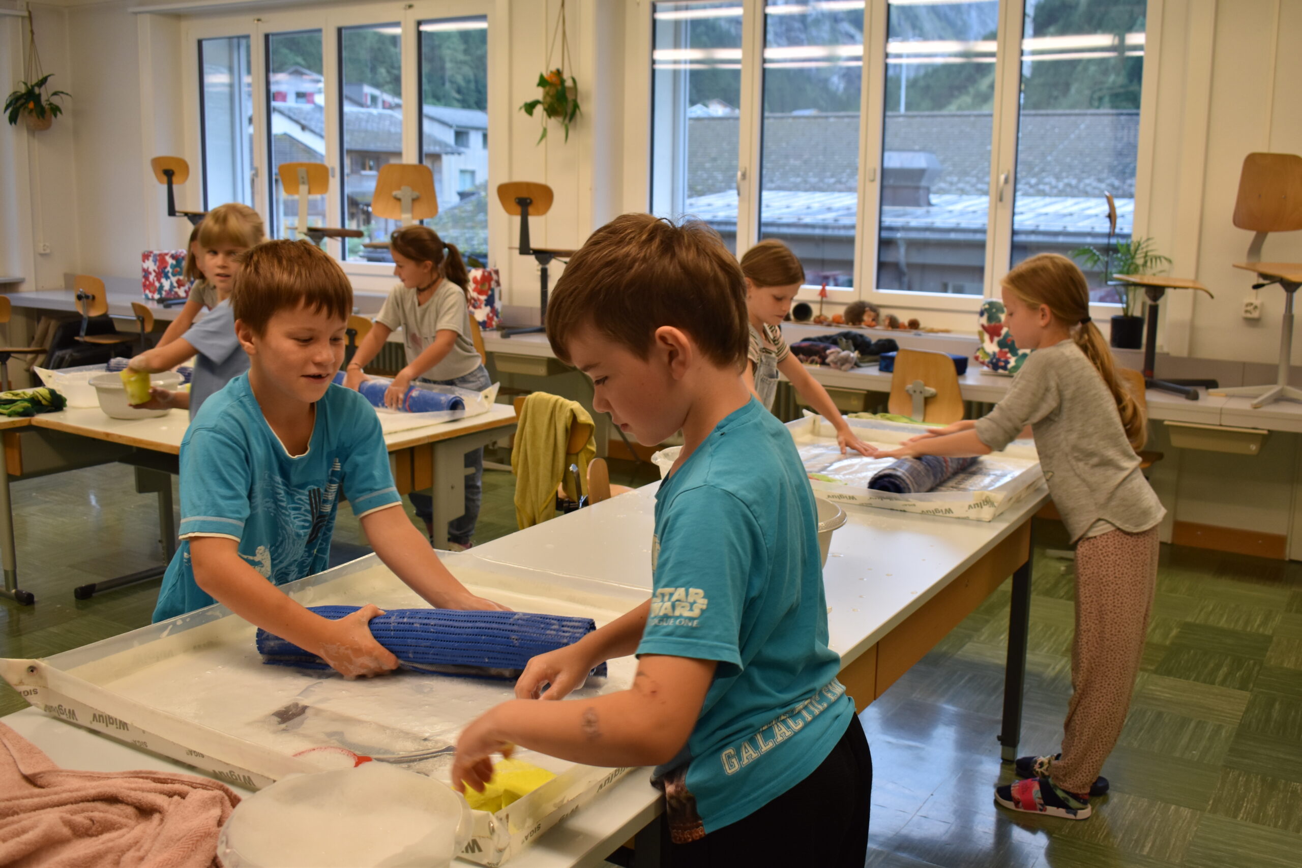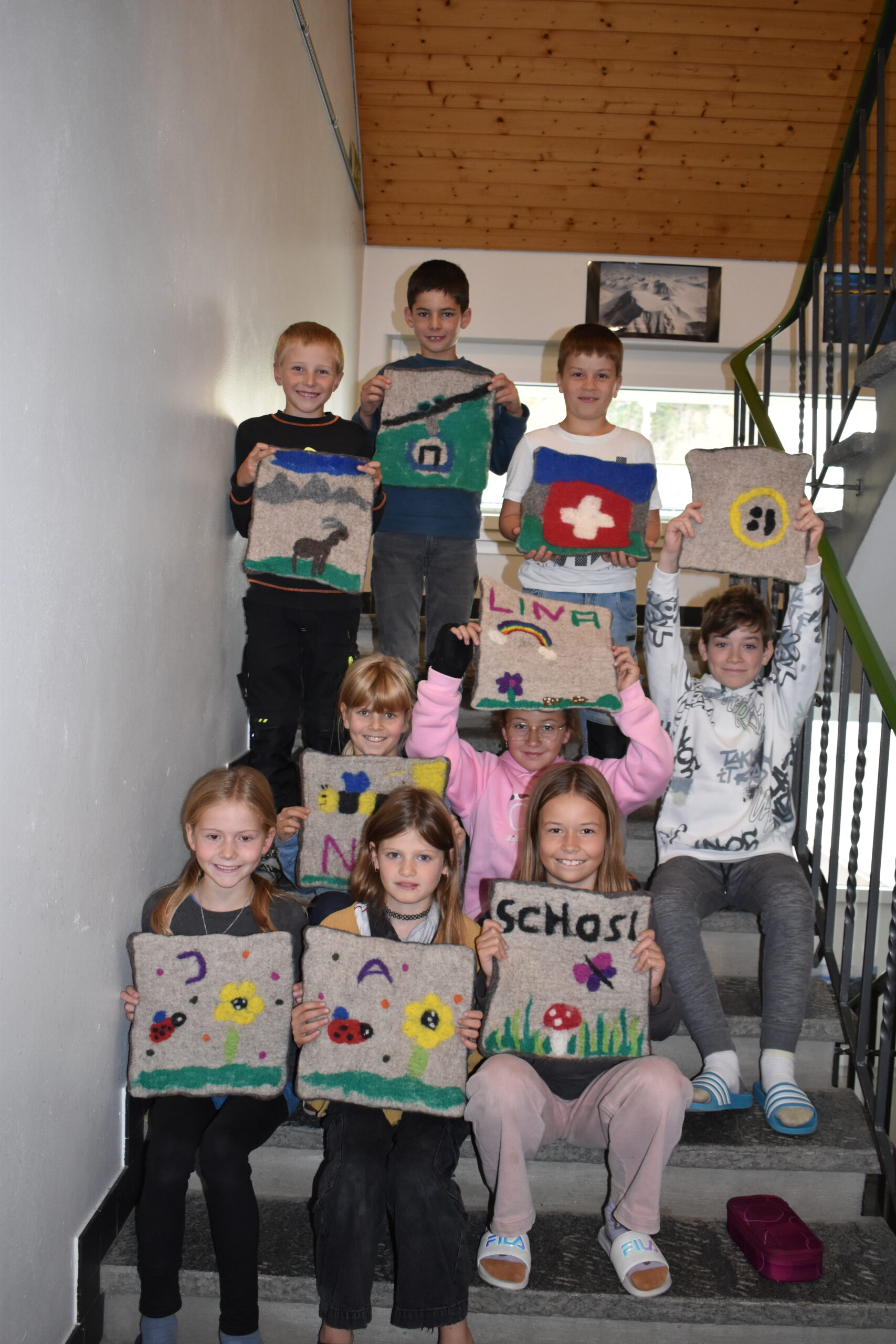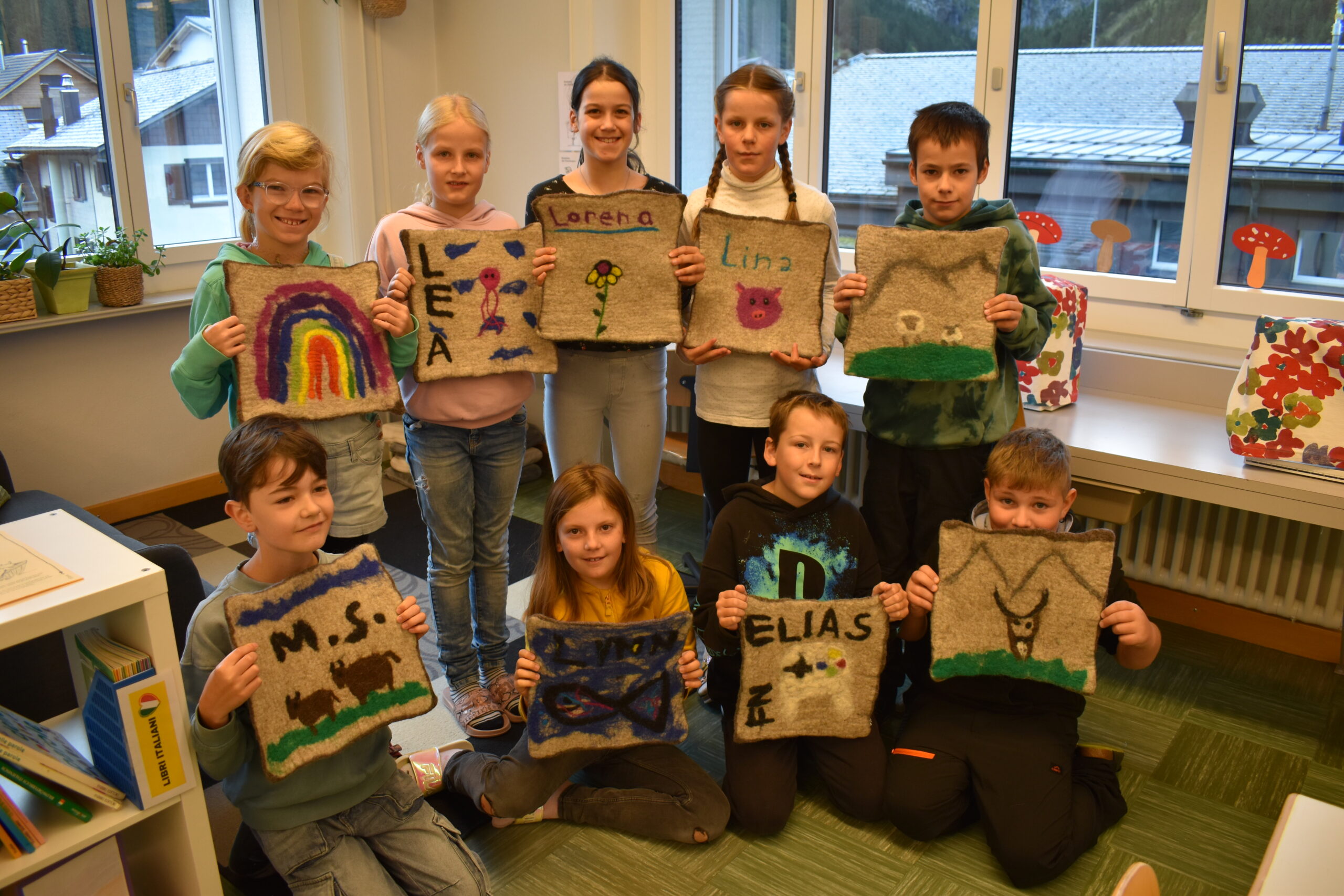 In den vergangenen Wochen haben die Schülerinnen und Schüler der 3. und 4. Klasse im Textilen Gestalten bunte Sitzkissen gefilzt. Mit viel Geduld, Kraft und Freude entstanden einzigartige, farbenfrohe Kissen, die nun im Klassenzimmer und Zuhause genutzt werden 😊.