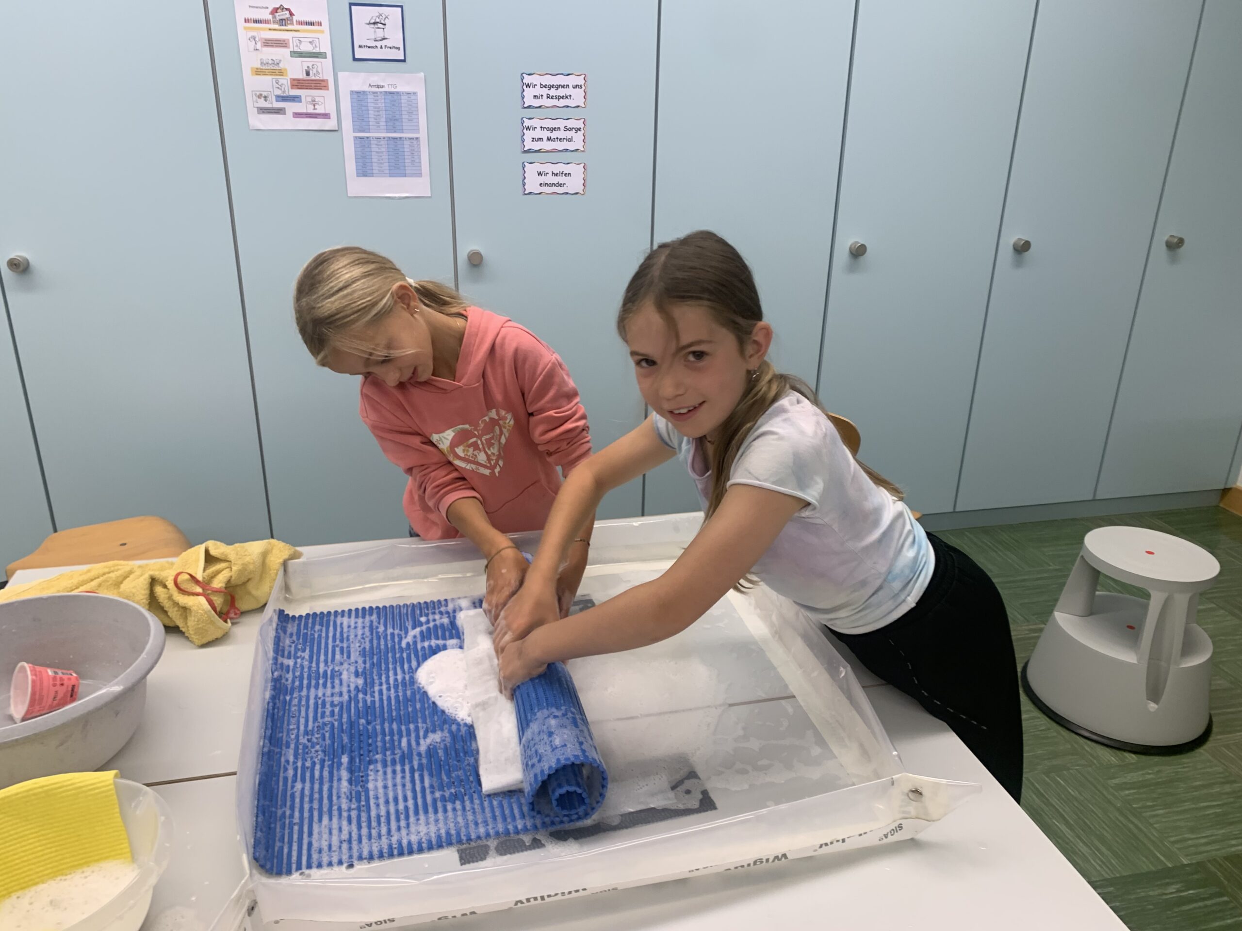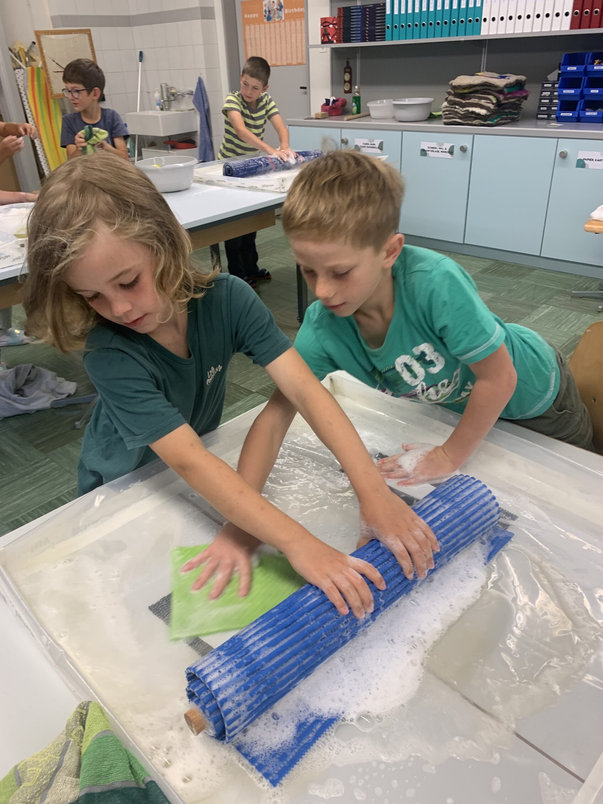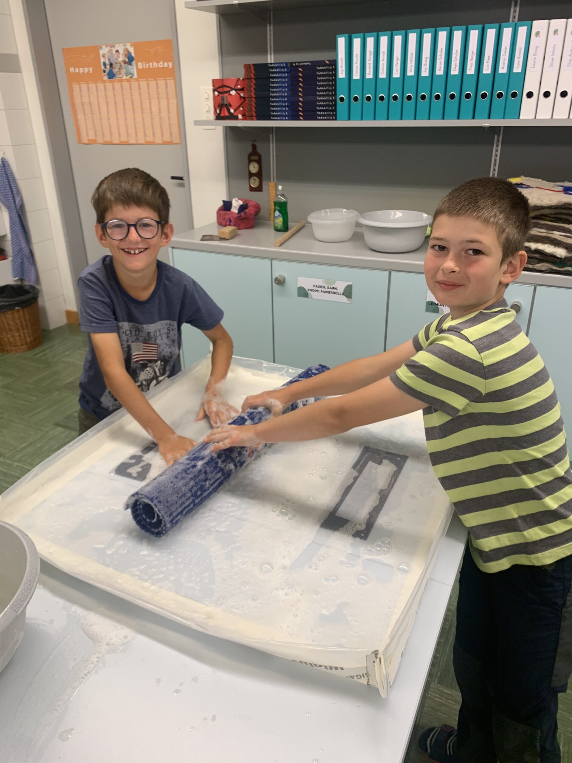 In den vergangenen Wochen haben die Schülerinnen und Schüler der 3. und 4. Klasse im Textilen Gestalten bunte Sitzkissen gefilzt. Mit viel Geduld, Kraft und Freude entstanden einzigartige, farbenfrohe Kissen, die nun im Klassenzimmer und Zuhause genutzt werden 😊.
