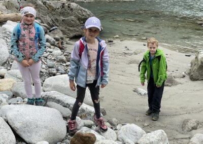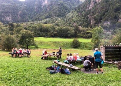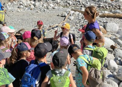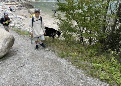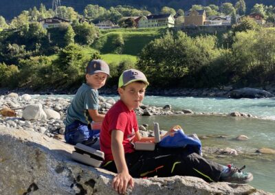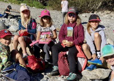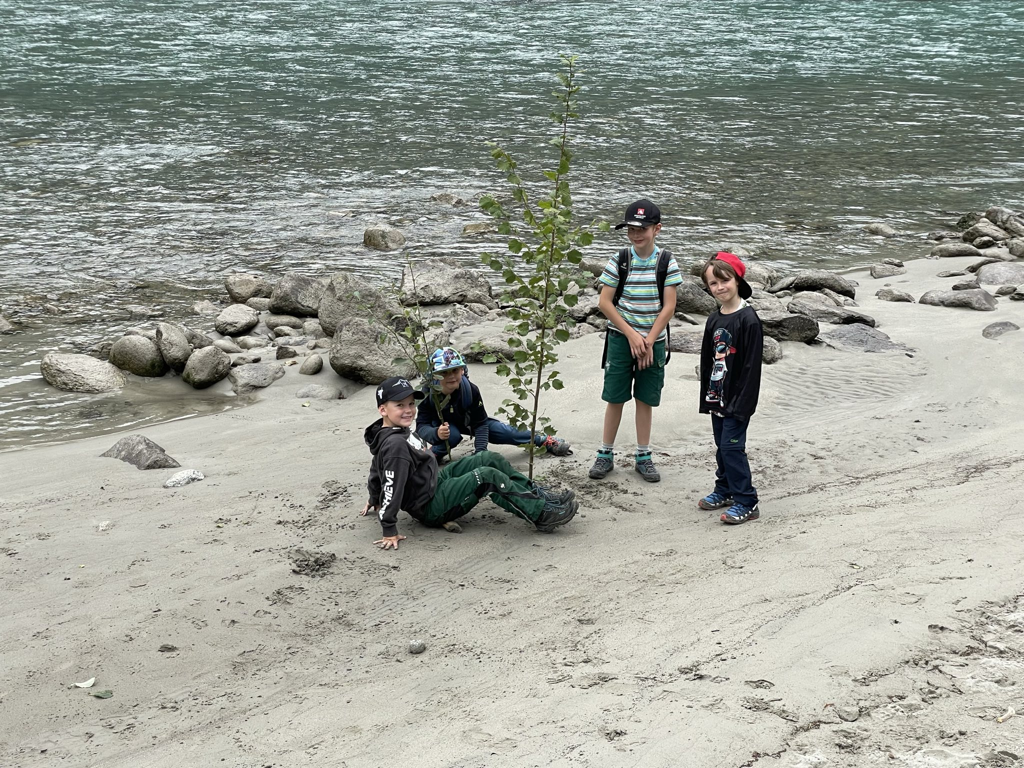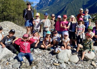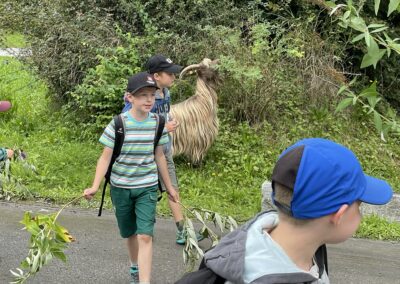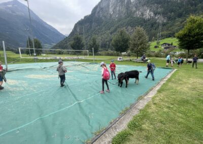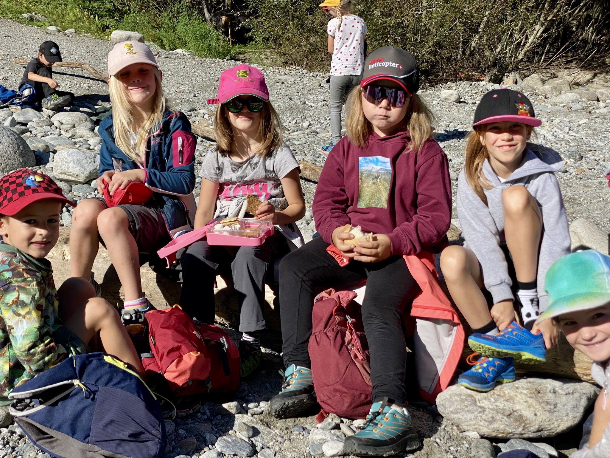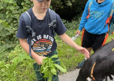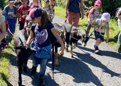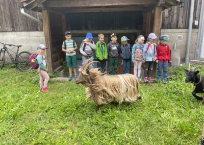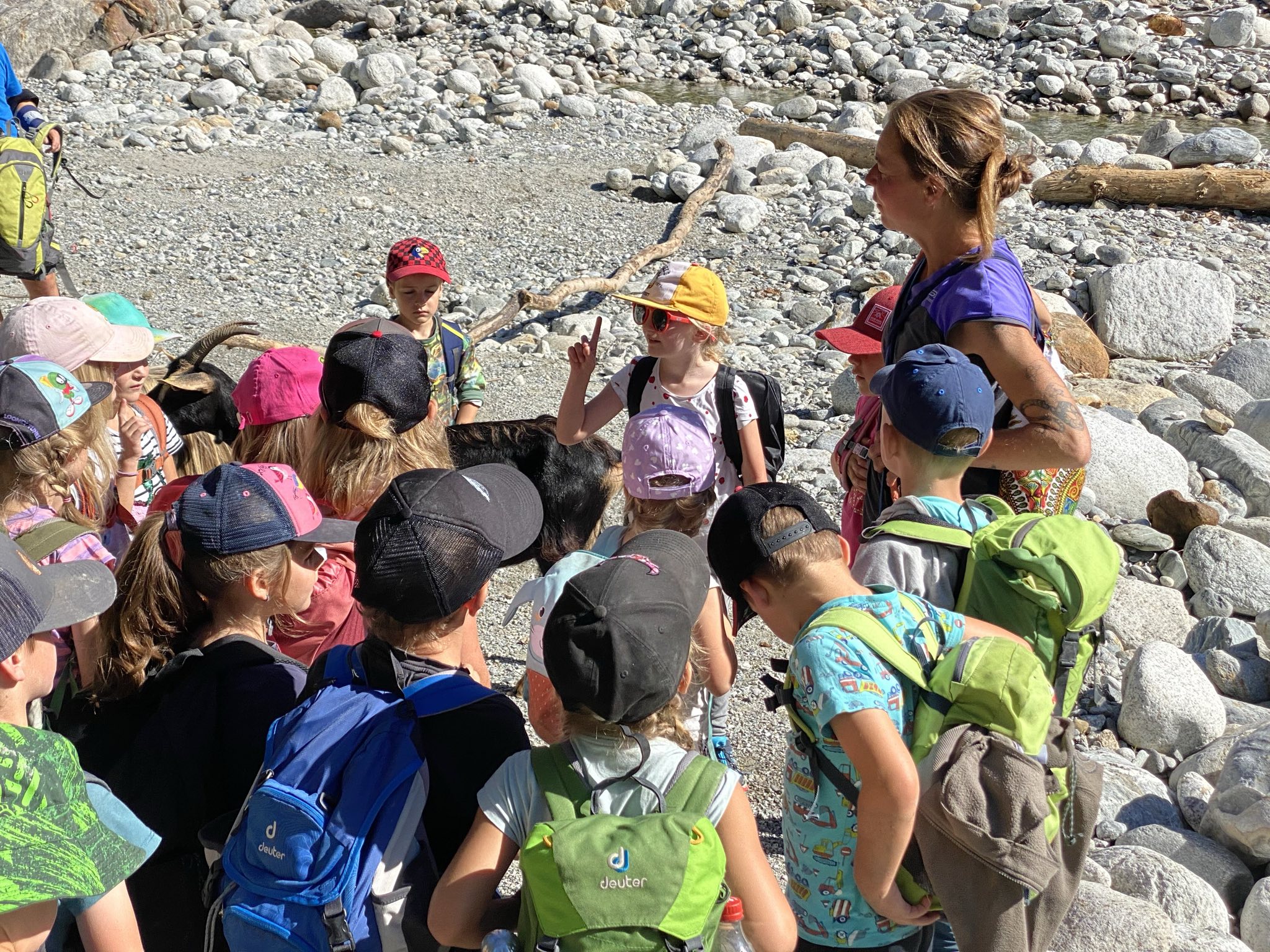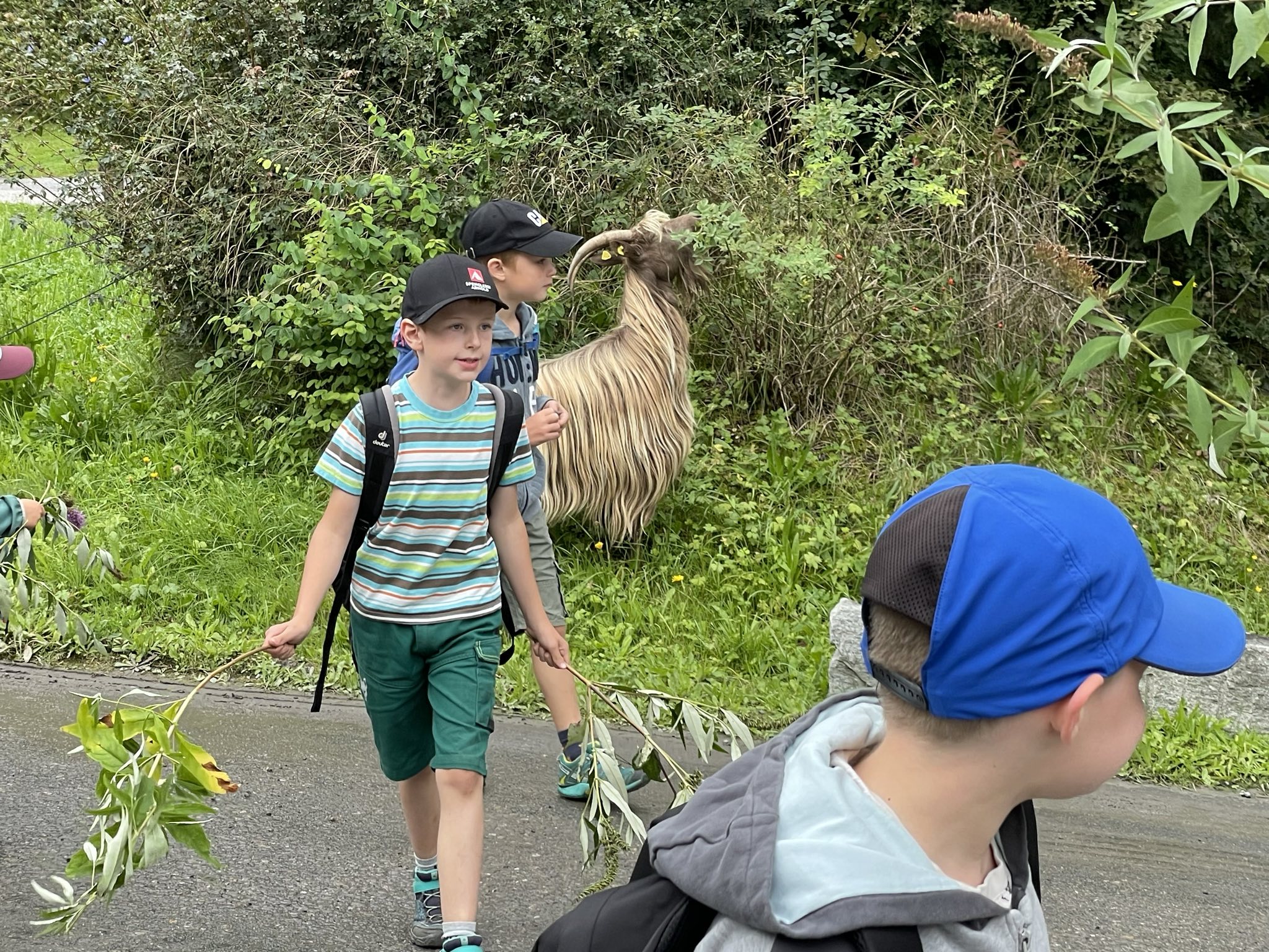 Mit dem Bus fuhren wir zuerst nach Amsteg. Dort warteten beim Bähndli Amsteg-Arnisee bereits 4 hungrige Ziegen und ihre Besitzerin Nadine Bless auf uns. Die Ziegen waren sehr zutraulich und liefen mit uns frei der Reuss entlang Richtung Selderboden (Silenen). Auf der Strecke durften wir die Ziegen Elma, Rocky, Carina und Blacky mit Blättern und Blumen füttern und sie für eine kurze Zeit sogar an Leinen führen. Nach dem Zmittag auf dem Selberboden mussten wir uns auch schon wieder von den Ziegen und Nadine verabschieden. Die restliche Zeit vor der Rückfahrt verbrachten wir auf dem Spielplatz.