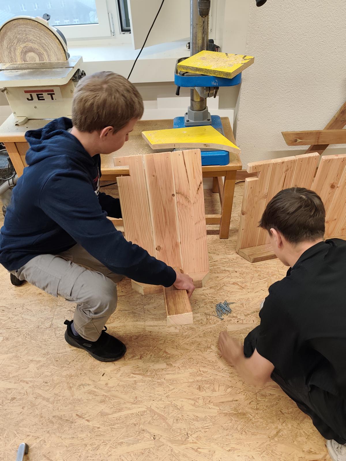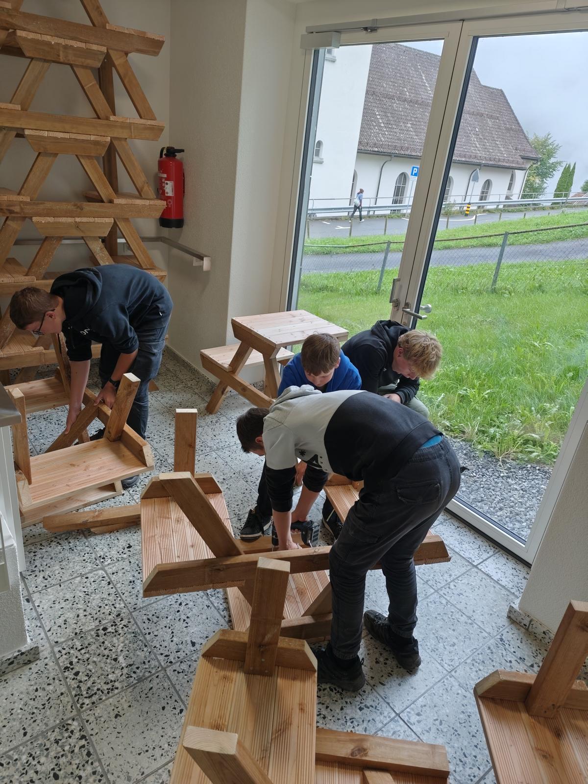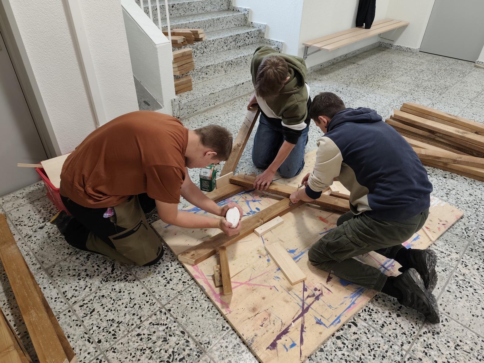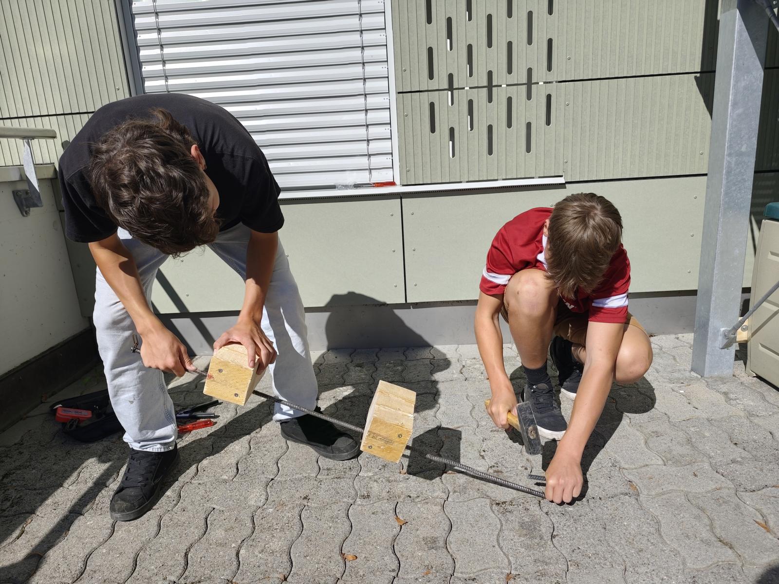 Chrampfcheibä.kss. Es würde entworfen, gesägt, geschraubt, montiert, repariert und installiert (alles Partizip II), was das Zeug hielt. Endlich hat die KSS einen Pausenplatz, der die Bewegung fördert und weg von der Strasse ist. Dank geht an alle HandwerkerInnen, toller Einsatz! Und auch an Rolli Simmen, der ein Mann der Tat ist und unglaublich schnell und innovativ Projekte mit den Lernenden in die Praxis umsetzt.:-)