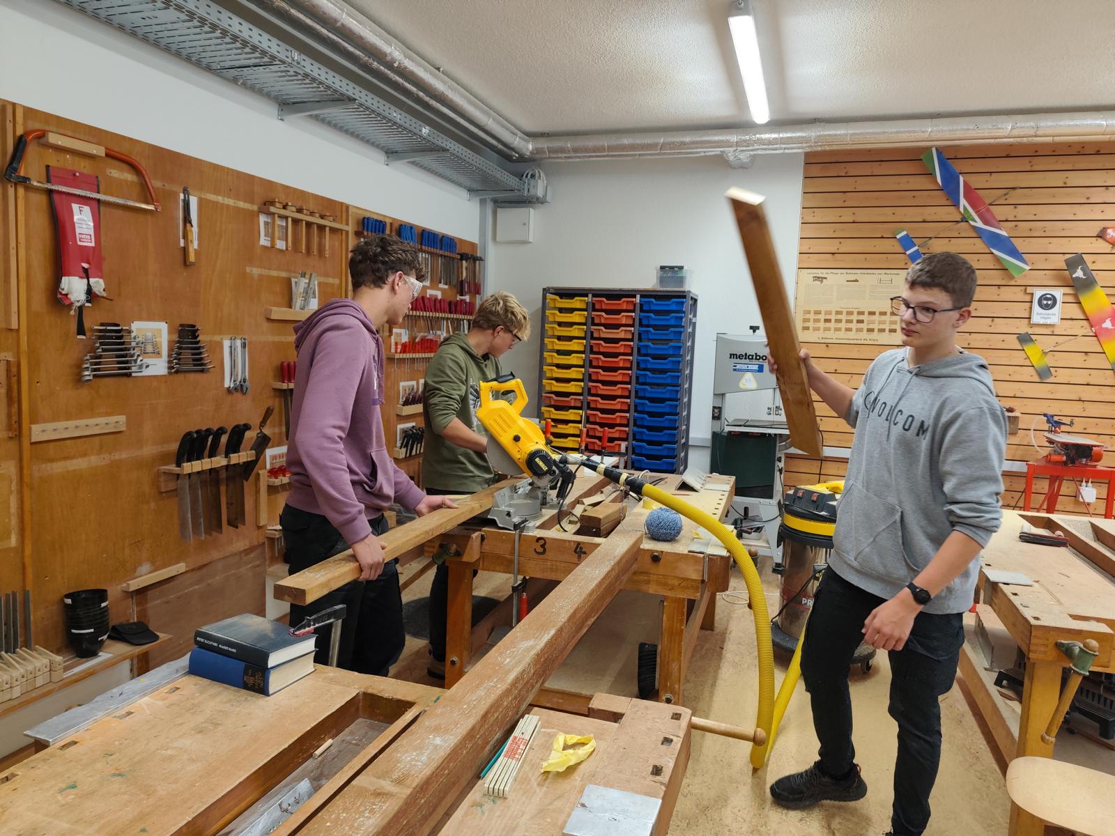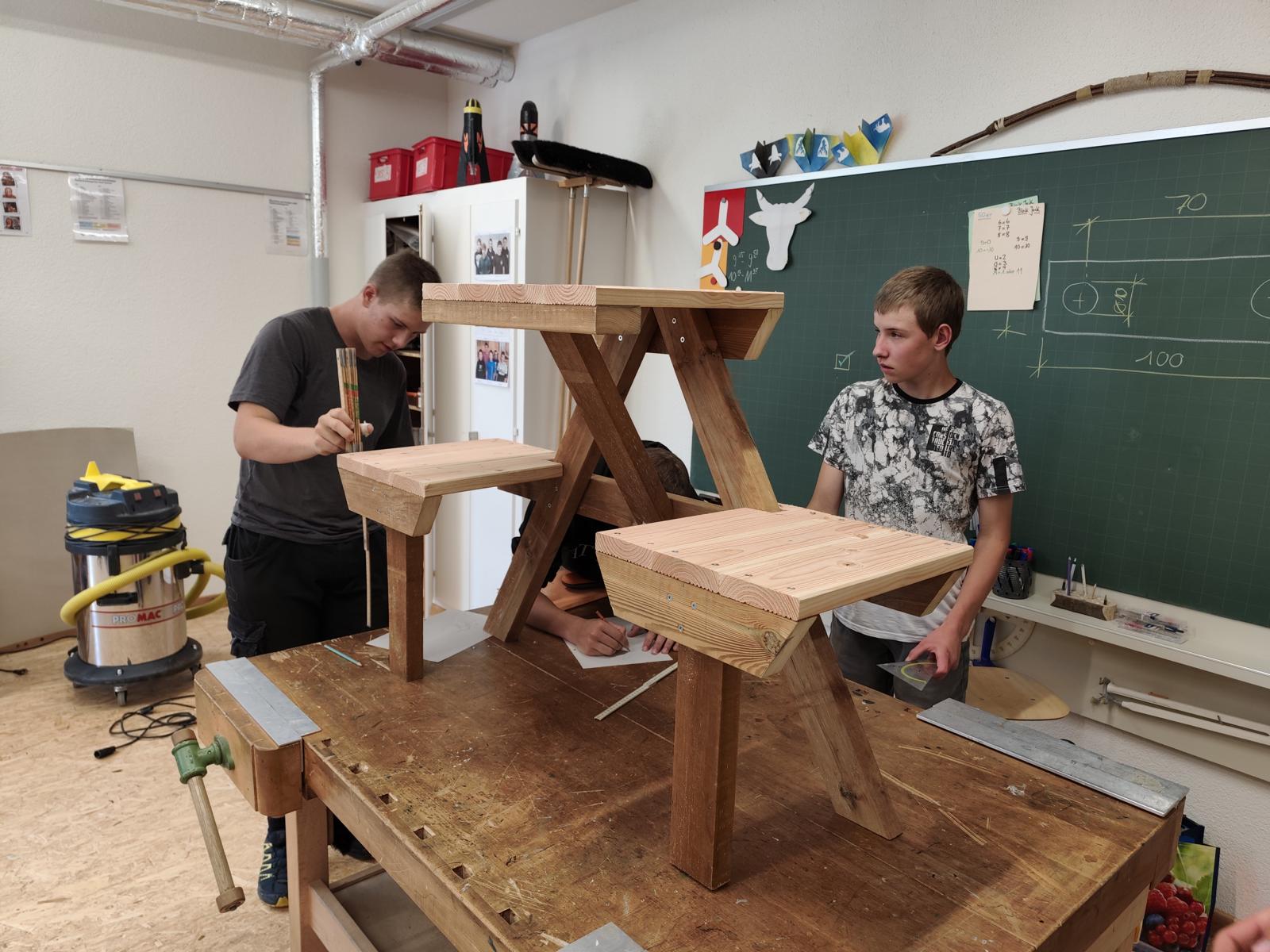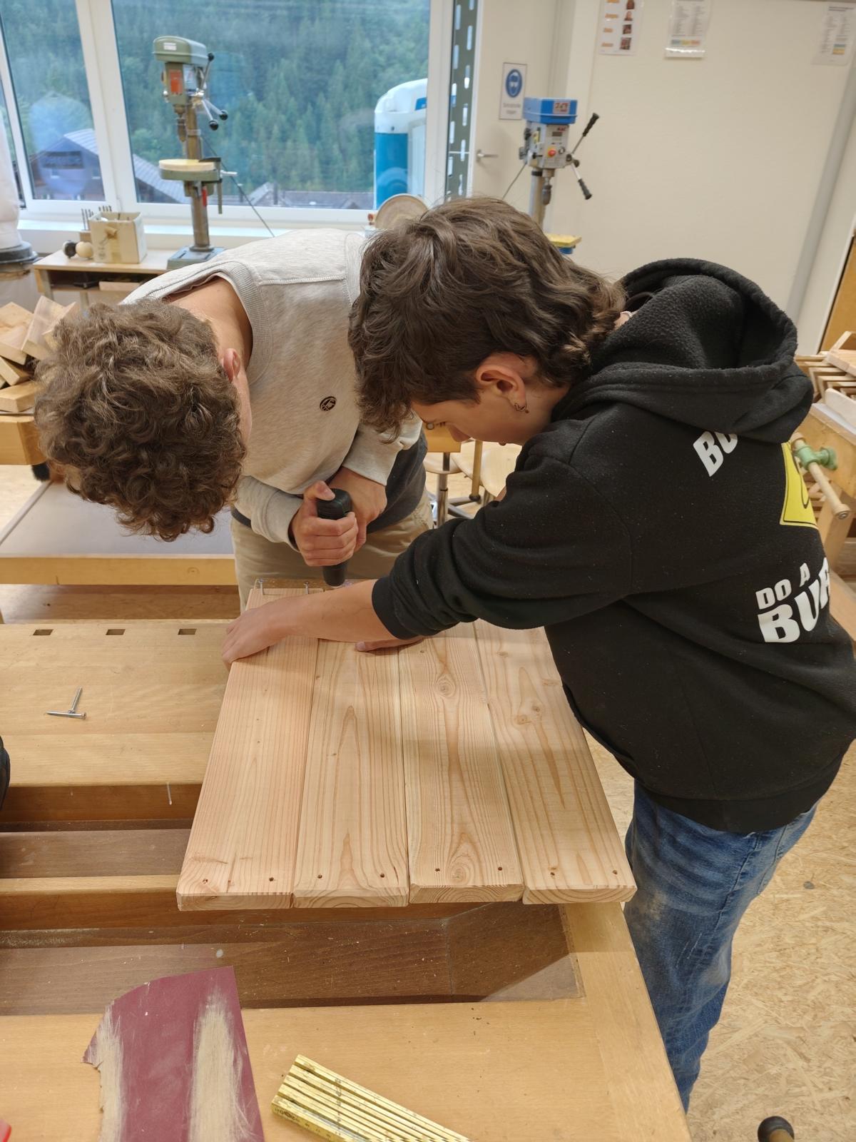 Chrampfcheibä.kss. Es würde entworfen, gesägt, geschraubt, montiert, repariert und installiert (alles Partizip II), was das Zeug hielt. Endlich hat die KSS einen Pausenplatz, der die Bewegung fördert und weg von der Strasse ist. Dank geht an alle HandwerkerInnen, toller Einsatz! Und auch an Rolli Simmen, der ein Mann der Tat ist und unglaublich schnell und innovativ Projekte mit den Lernenden in die Praxis umsetzt.:-)