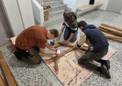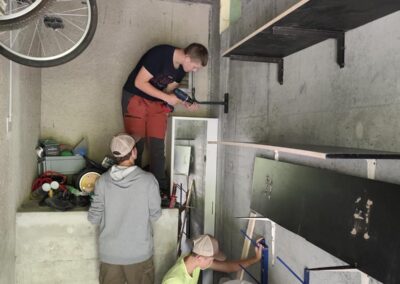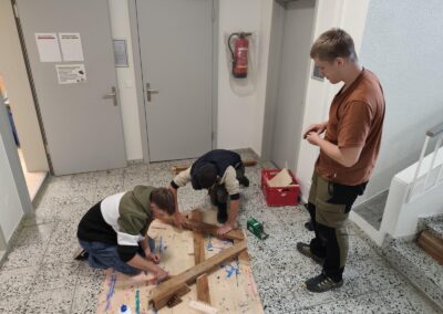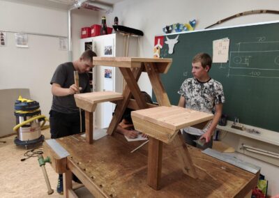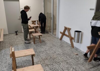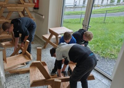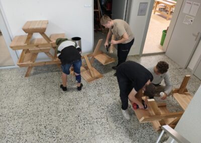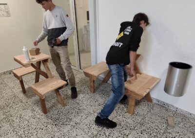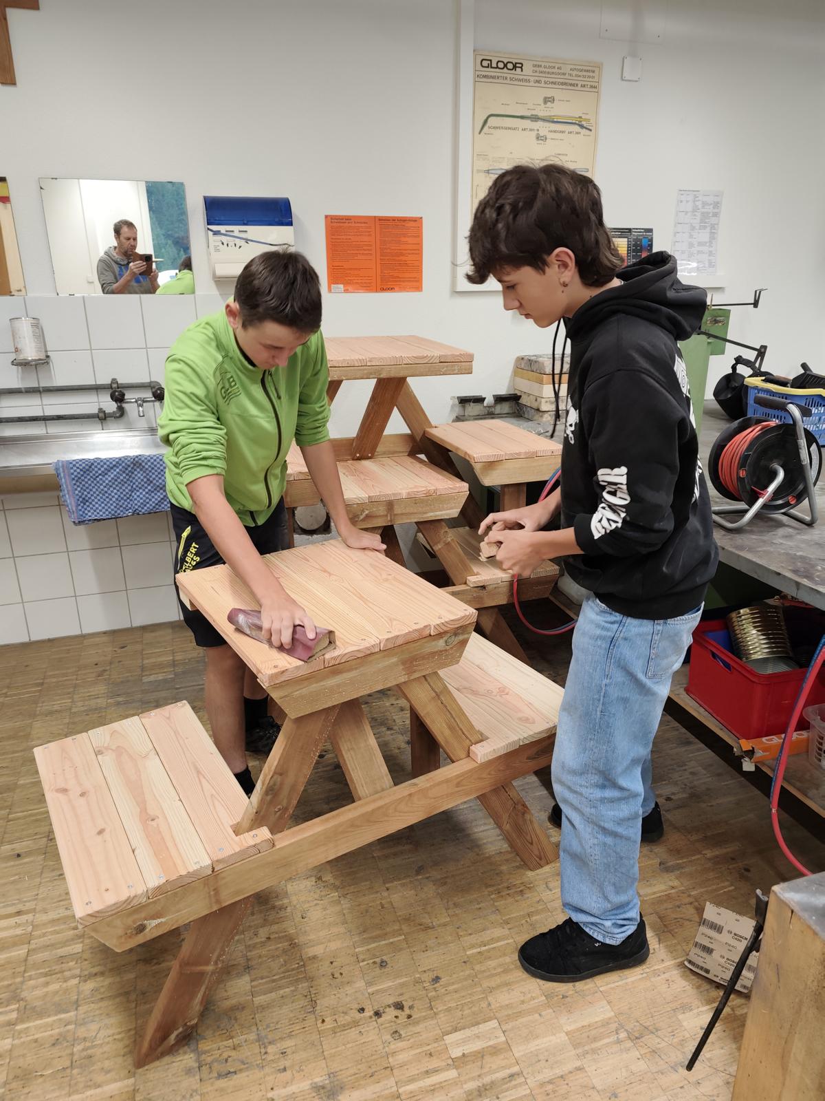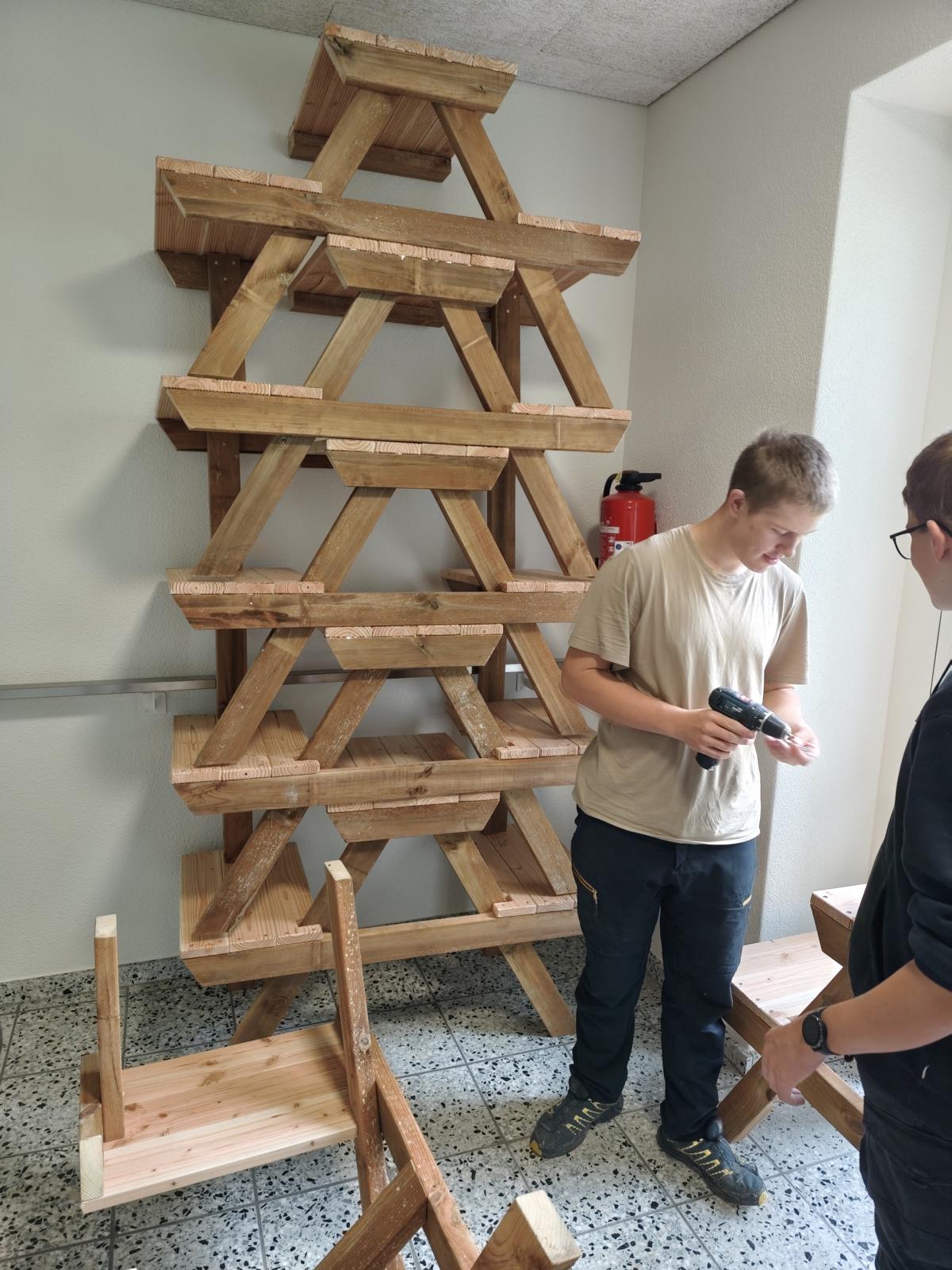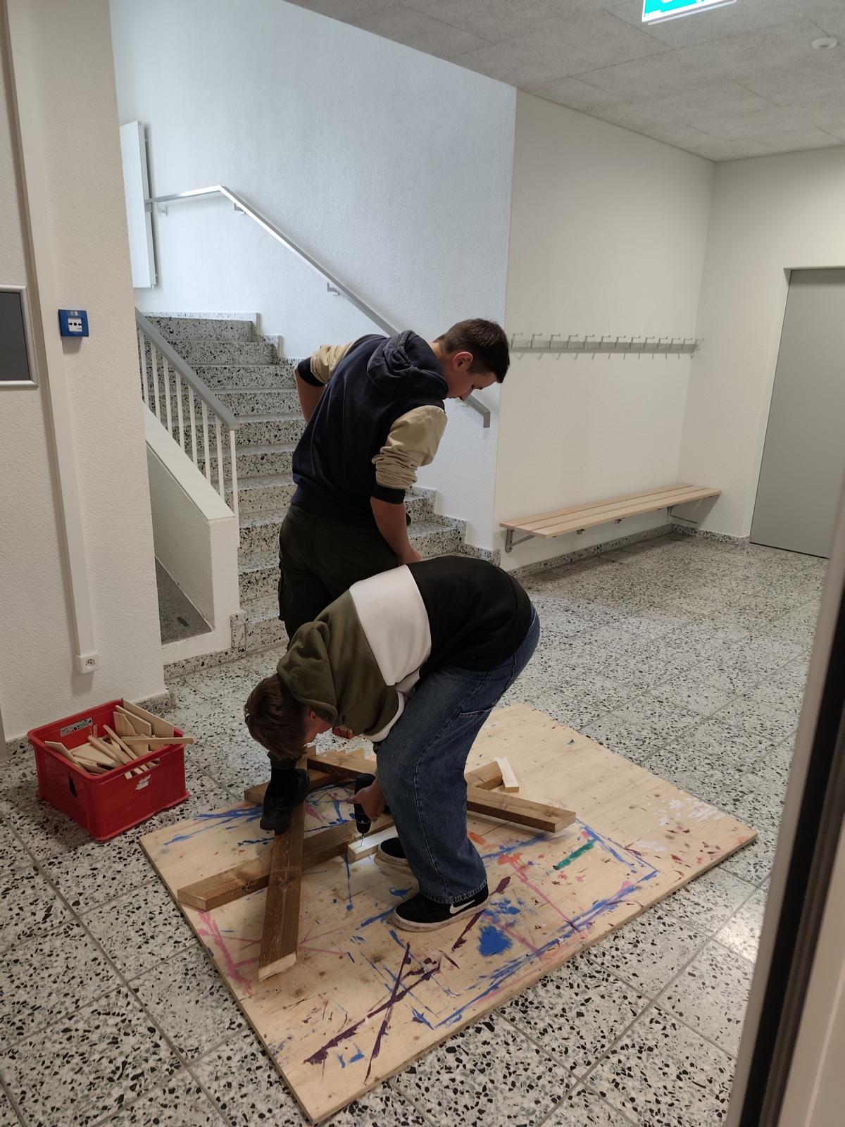 Chrampfcheibä.kss. Es würde entworfen, gesägt, geschraubt, montiert, repariert und installiert (alles Partizip II), was das Zeug hielt. Endlich hat die KSS einen Pausenplatz, der die Bewegung fördert und weg von der Strasse ist. Dank geht an alle HandwerkerInnen, toller Einsatz! Und auch an Rolli Simmen, der ein Mann der Tat ist und unglaublich schnell und innovativ Projekte mit den Lernenden in die Praxis umsetzt.:-)